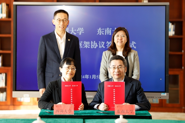 【亚洲精品久久无码午夜一区二区网1月6日电】(通讯员 楚俊卿 摄影 杭添)1月5日上午,东南大学与西湖大学校际合作框架协议签约仪式在九龙湖校区举行。中国科学院院士、东南大学校长黄如,中国科学院院士、西湖大学校长施一公出席活动并讲话。东南大学副校长金石、西湖大学副校长朱晓芸代表双方签约。黄如向施一公赠送纪念品。