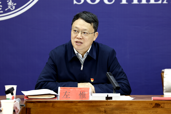 左惟在讲话中指出,《党史学习教育工作条例》体现了党中央对党史学习教育的高度重视,为推动党史学习教育常态化长效化提供了基本遵循。党的历史是最生动、最有说服力的教科书,要认真学习党史,从党的历史中汲取智慧和力量。全校各级党组织要认真抓好《党史学习教育工作条例》的学习宣传和贯彻落实,做到学史明理、学史增信、学史崇德、学史力行。要用好思政课、课程思政等多种渠道,推动党史进教材、进课堂、进头脑,引导广大青年学生从党史中感悟党的初心使命,增进对党的政治认同、思想认同、理论认同、情感认同,进一步发挥党史立德树人的重要作用,更好培养造就堪当时代重任的接班人。
