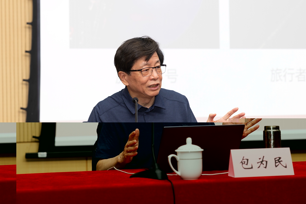 包为民院士学术报告由金石主持。他介绍了包为民在航天运载器总体及控制系统领域取得的杰出成就,并代表学校对包为民和郭雷两位院士的到来表示诚挚欢迎和衷心感谢。金石向包为民赠送了东南大学文化纪念品——南华彝绣《六朝松》,学生代表也送上鲜花,表达了师生们的崇高敬意。